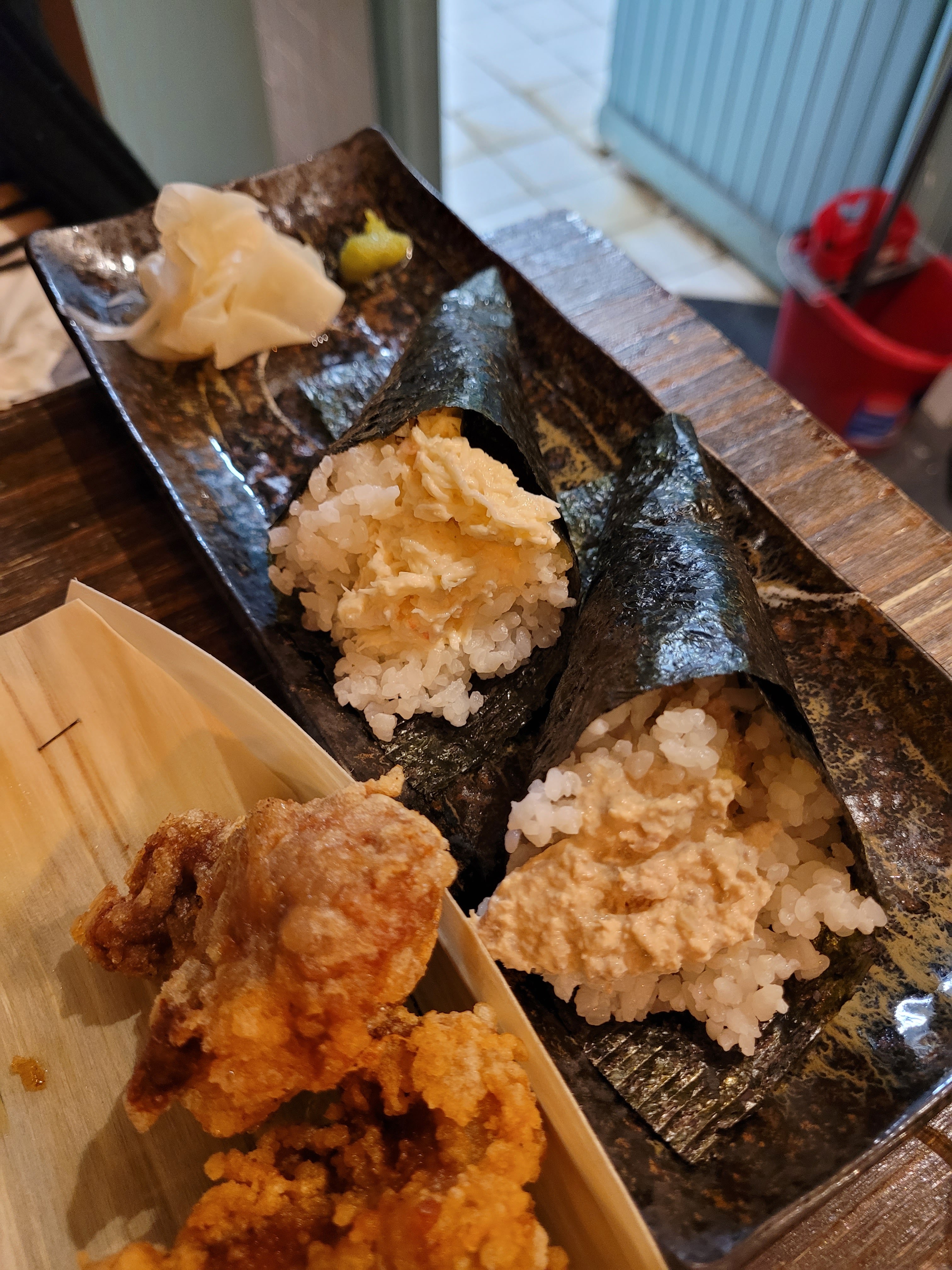 Lieu humble et authentique. Les tapas étaient fraîches bien sûr et succulentes. La bière aussi. Nous avons aussi goûté 2 desserts (glace au sésame noir qui est un délice et daifuku qui est une tuerie tellement il est parfumé et soyeux). On se sent à l'aise dans ce bistro japonais, le monsieur est calme, doux et très efficace vu qu'il fait tout tout seul. Il est attentif il prend le temps de savoir si vous avez apprécié sa cuisine. Je le remercie pour sa cuisine et le félicite pour son attitude sincère