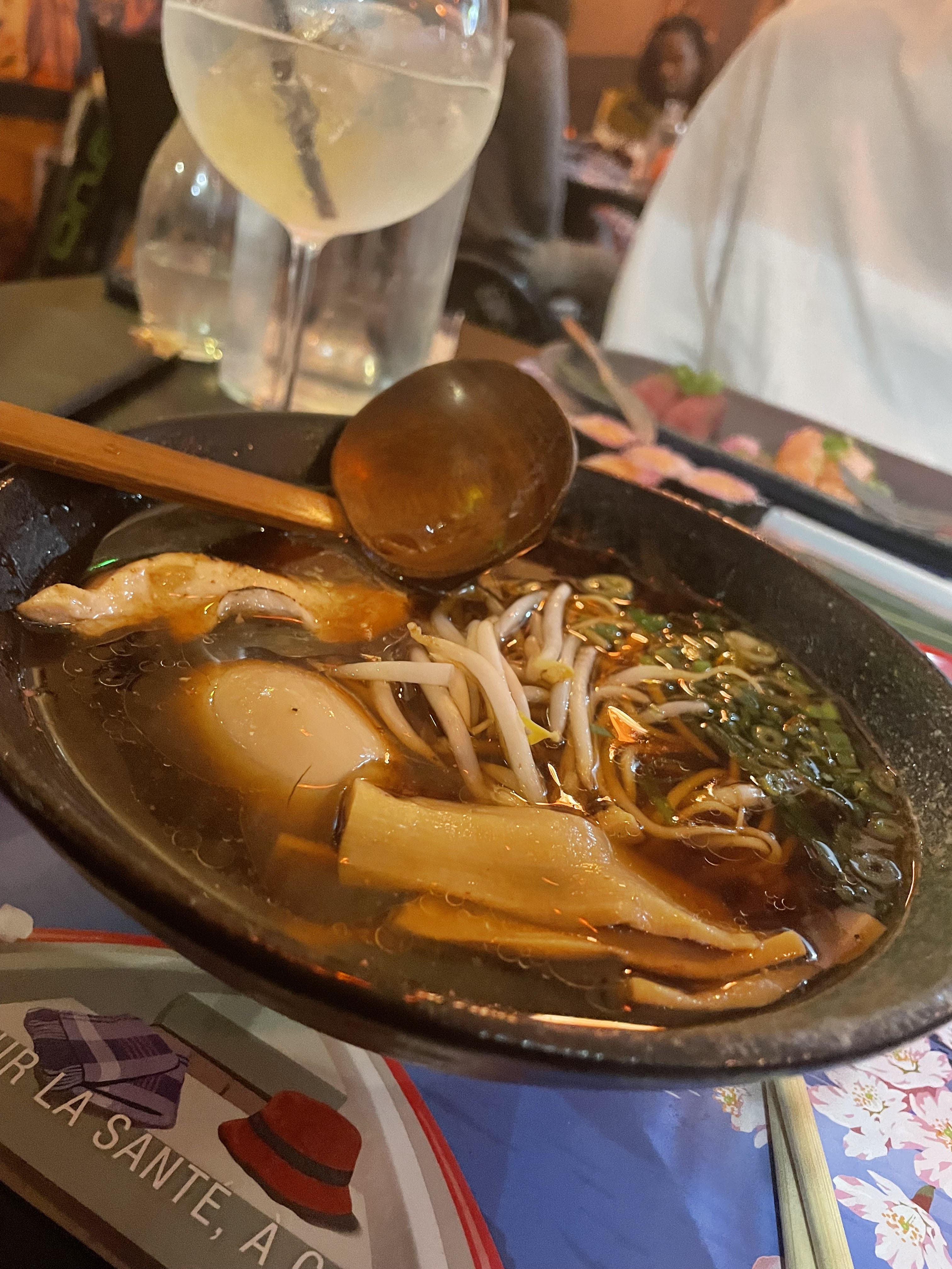 C'était plutôt bon ces ramens, la déco est très sympathique à l'intérieur sur le premier coup d'œil que j'ai pu jeter. Le bouillon que j'ai goûté était très goûtu. Les sushis sont sensationnels !