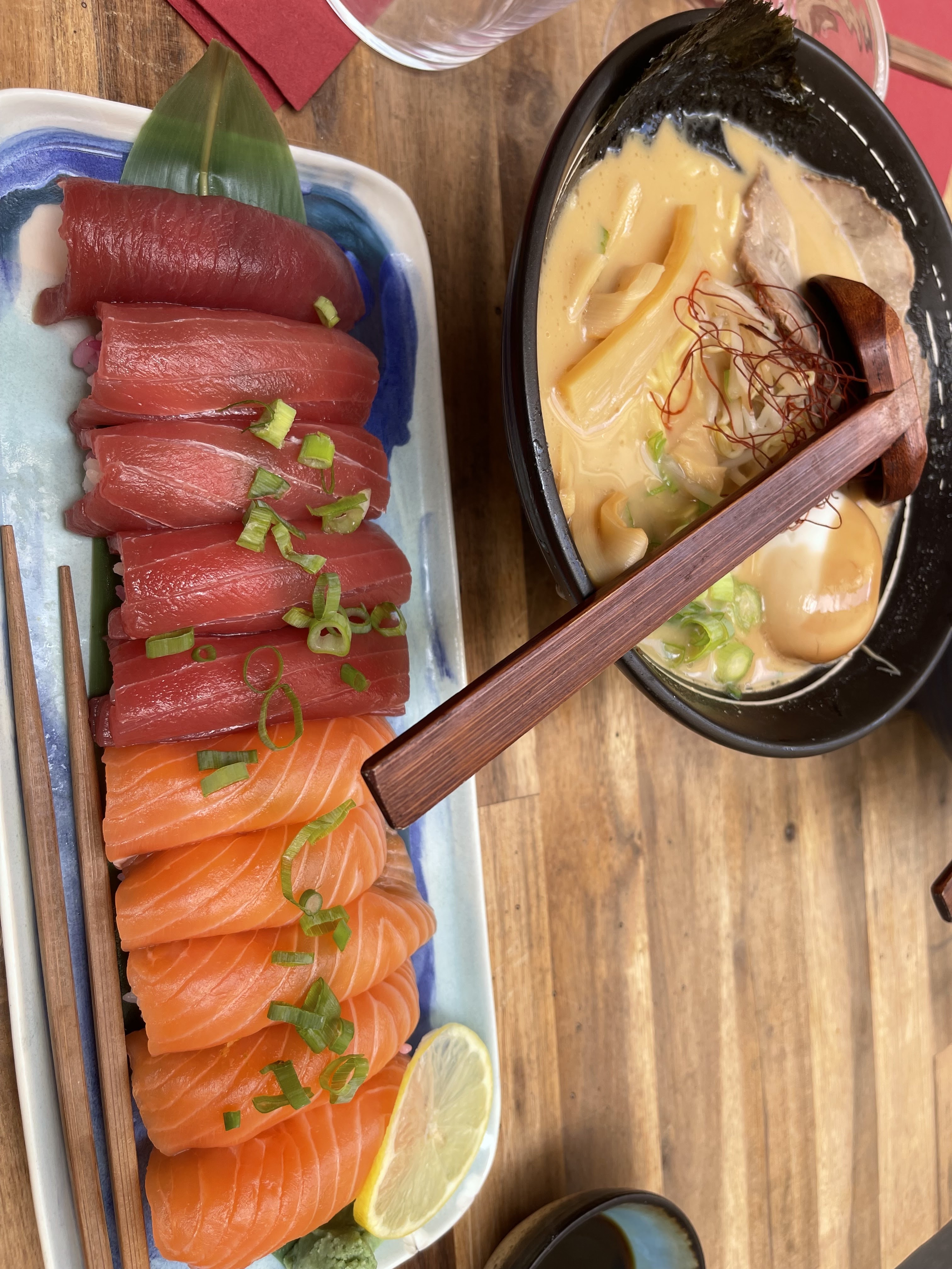 Excellent restaurant! Pour ceux qui connaissent Umiyaki, ce ne sera pas une surprise: le patron est le même! La gamme de prix change, mais pas la qualité, on en a pour son argent. Les ramen sont très bons, le bouillon goutu, et les œufs coulants. J'aurai personnellement bien aimé une seconde tranche de viande, mais c'est de la gourmandise pure, et possible en supplément. Concernant les sushis, ils ne sont peut-être pas le plat principal offert par l'établissement, mais ils battent sans aucun problème la qualité de beaucoup de restaurants spécialisés de la ville. Encore beaucoup à essayer sur leur carte, comme les don, mais l'un dans l'autre, je recommande les yeux fermés !