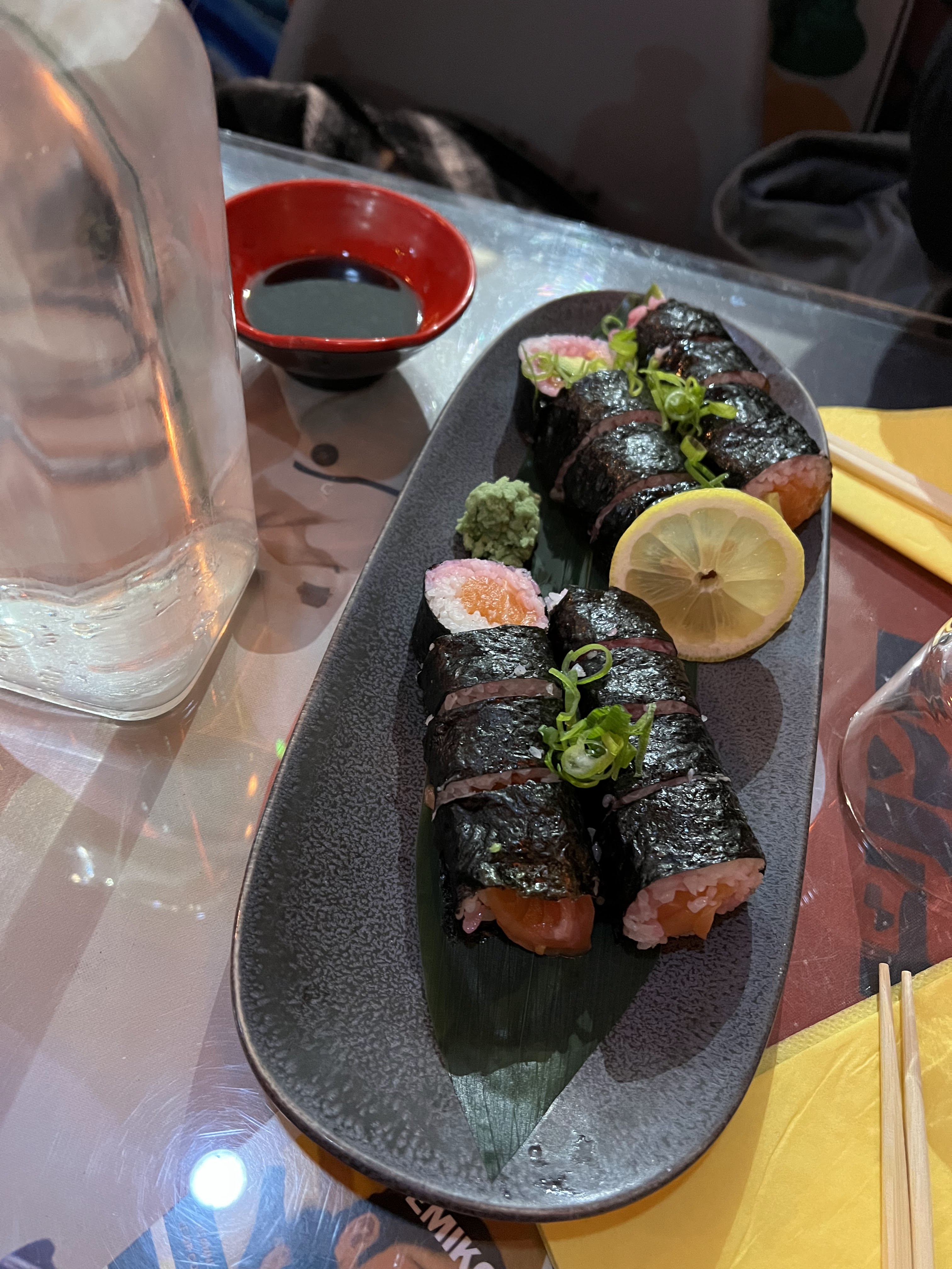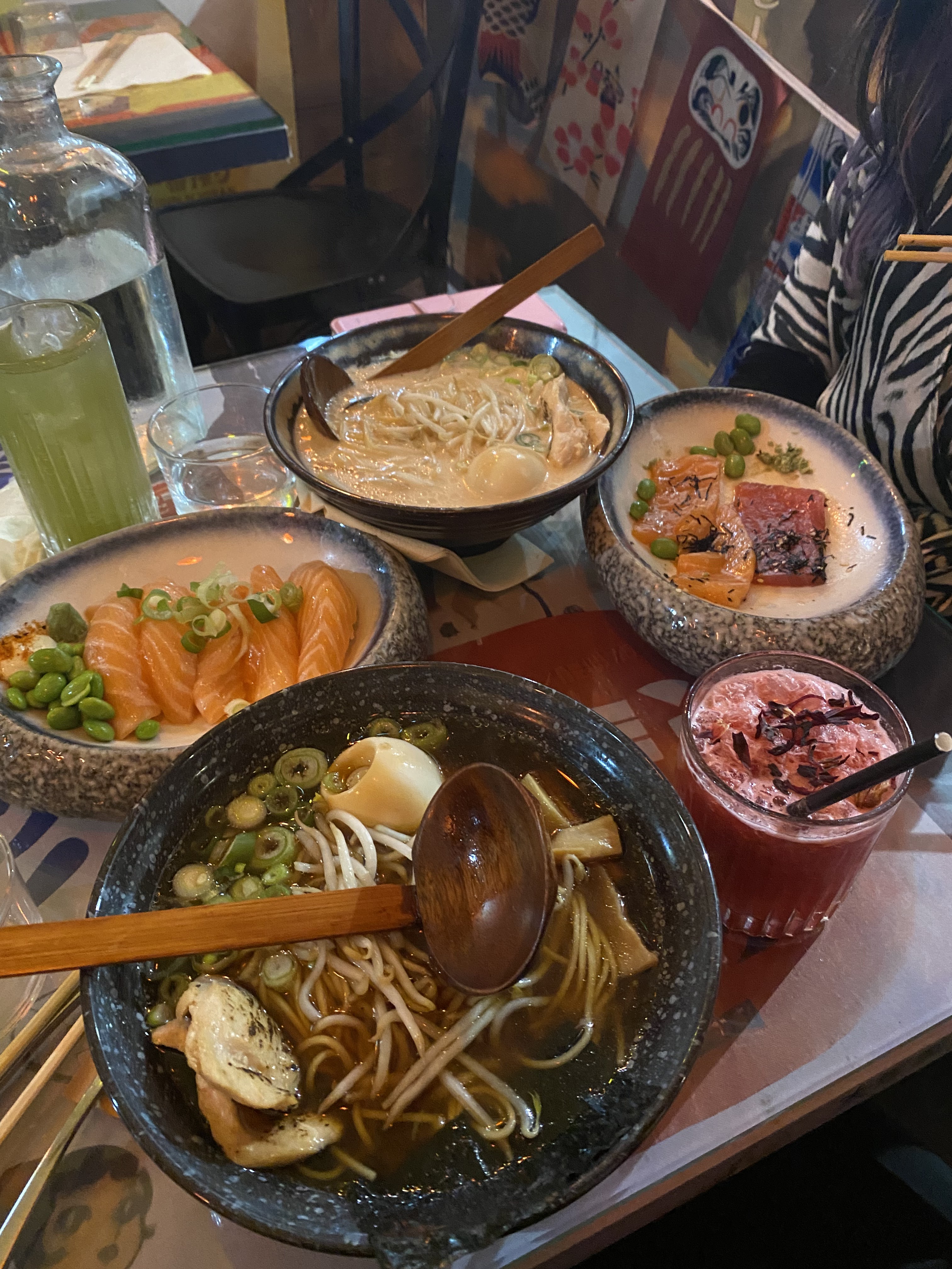 Personnellement, je ne m’y retrouve pas dans les Ramen (j’avais encore faim) je trouvait ça trop salé aussi mais mes copines ont aimer, Pour les sushis avec la sauce soja salé, on se retrouve dans l’authentique ! Certes, mais le prix pourrait être plus abordable, car la tendance du partage ici est assez difficile à concéder (suis je gourmand ? Oui) Niveau service au top, ambiance au top et niveaux présentation, c’est esthétique !