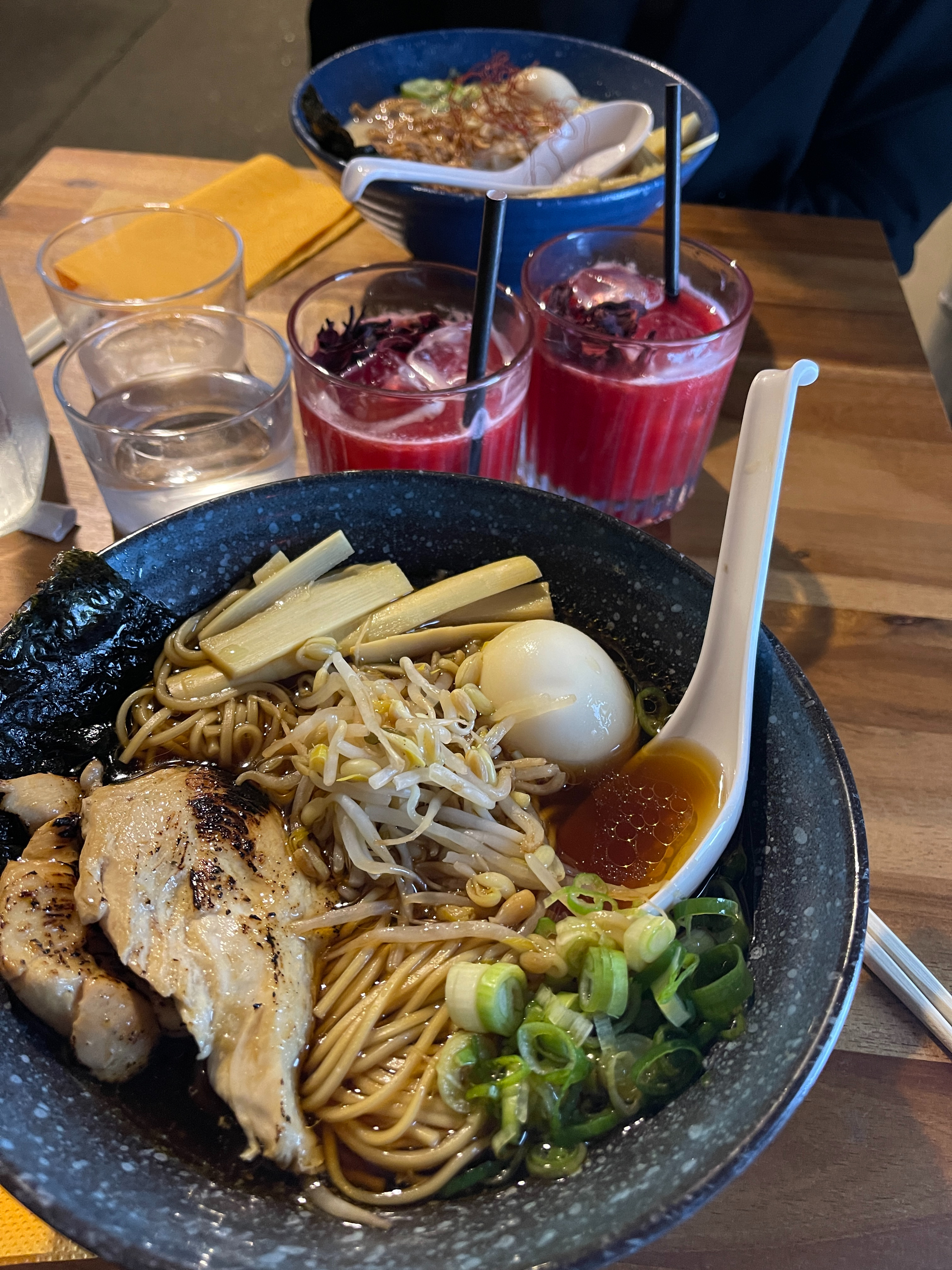 Superbe restaurant de ramen. Large choix de bouillon (soja, miso, porc) et de rôti (porc, poulet). Petite terrasse très appréciable. Les boissons sont également originales.