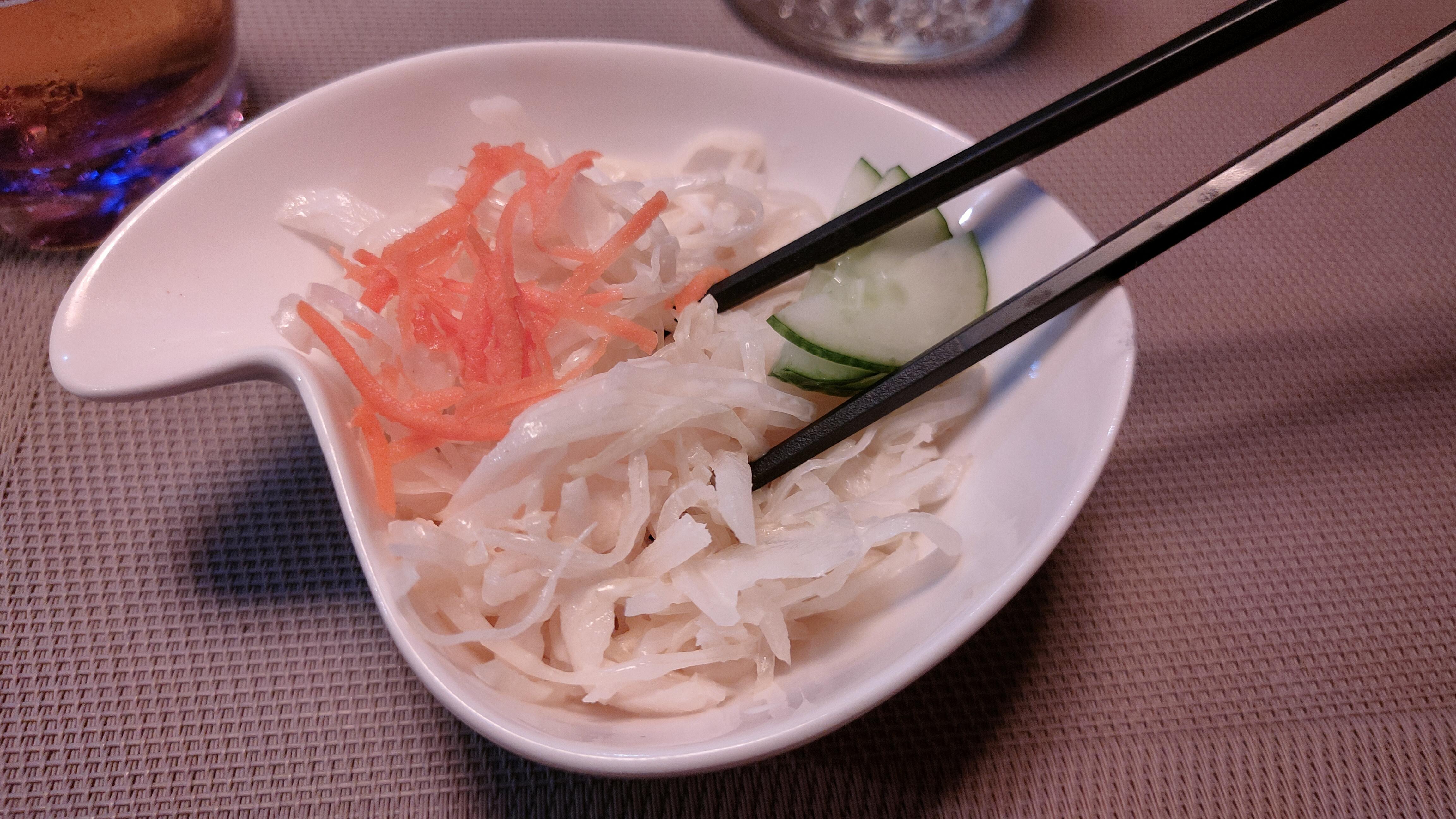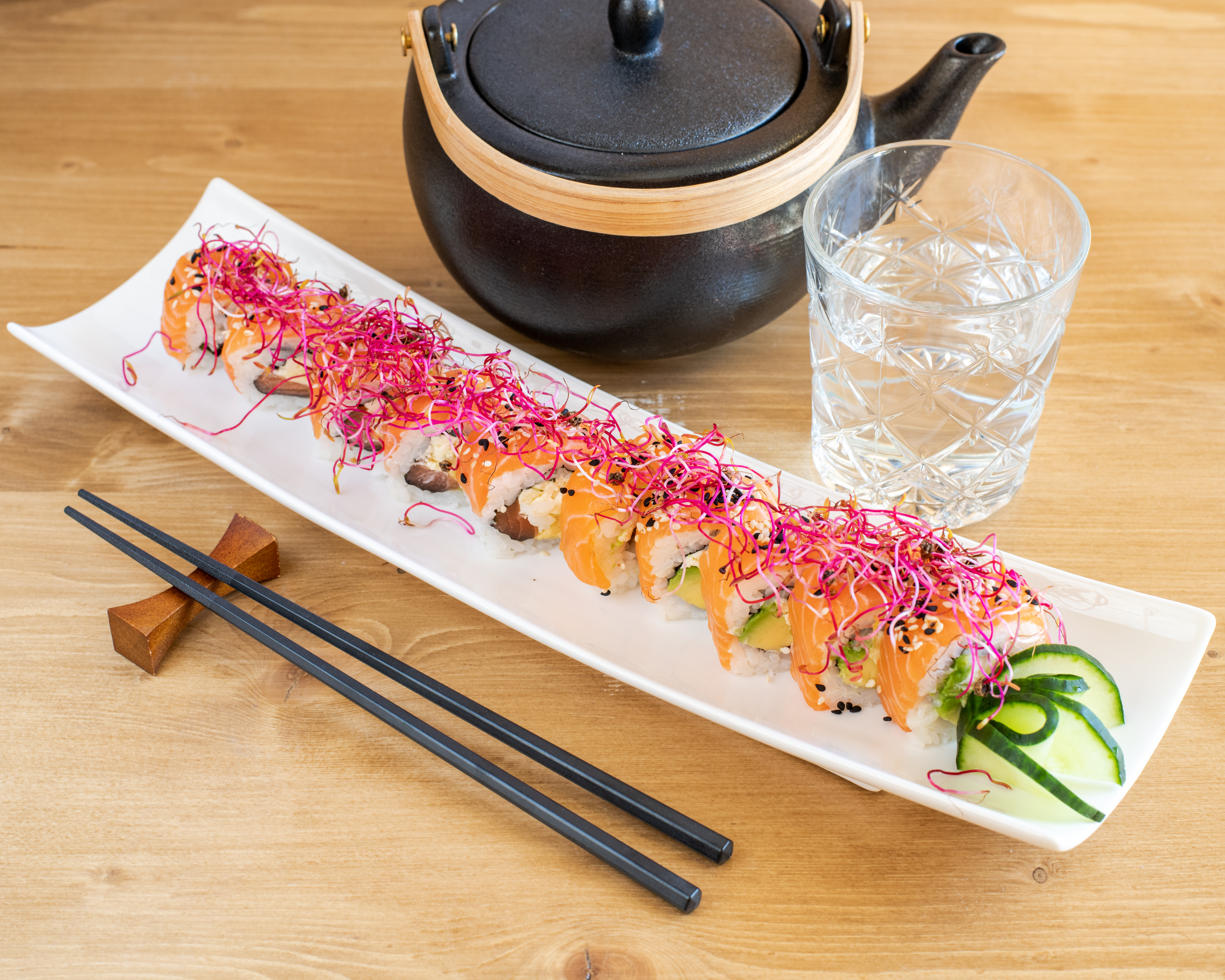 Les proportions ne sont pas équilibrées du tout, le riz est très compact et en beaucoup trop grande quantité par rapport à la garniture qui est très économique. Ce qui donne des sushis énormes et indigestes et donc pas agréable à manger car pas goûteux du tout. Une salade de chou avec de la crème… Le personnel est cependant très agréable mais pour manger des bons sushis, je ne recommande pas.