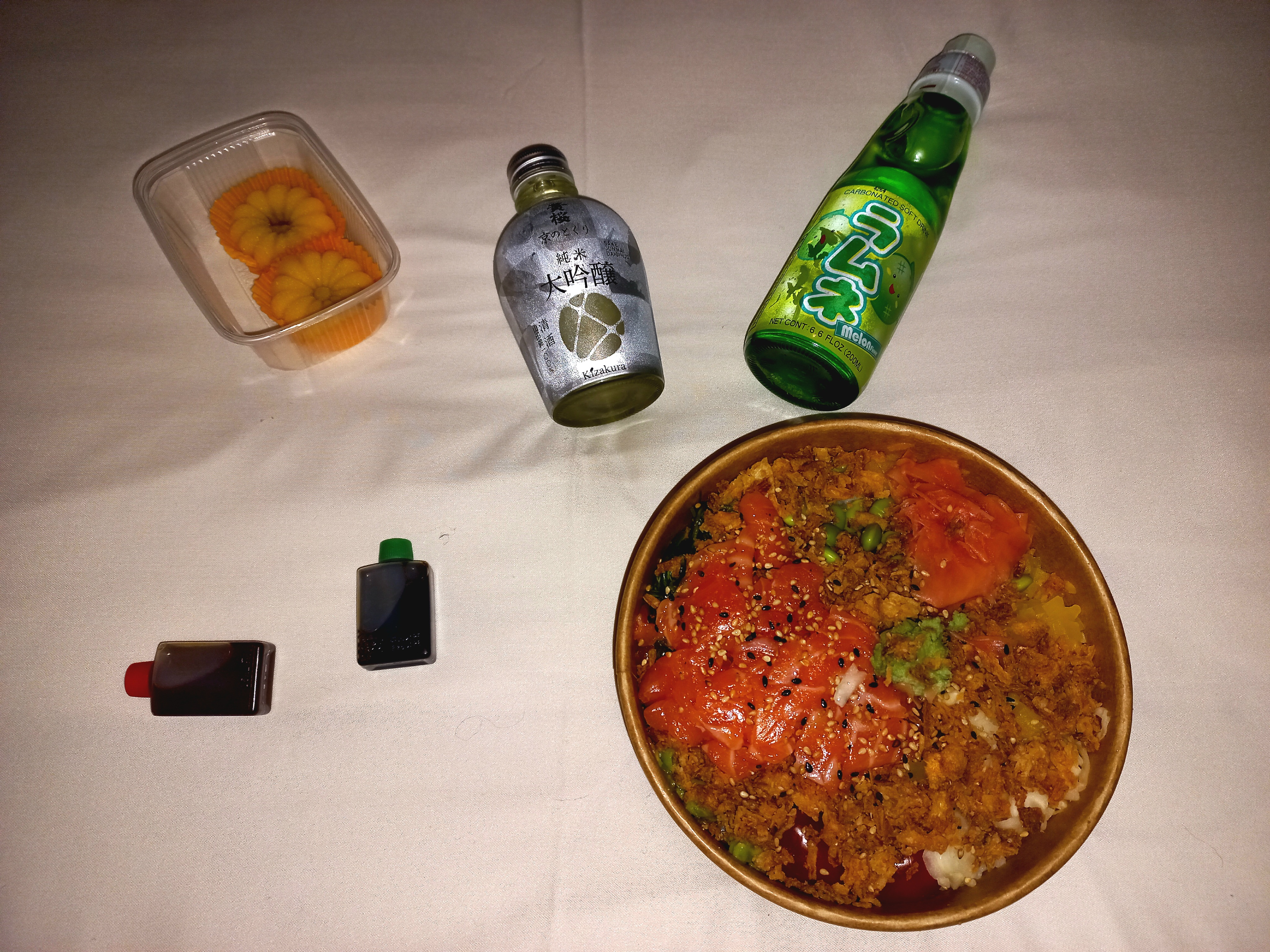 Riz fade, soupe bien trop salée, sashimi de thon franchement mauvais (qui sont pourtant mes préférés d'habitude) autant dans la texture qu'au goût. Les seuls points positifs : le prix relativement correct et la taille des sashimis saumon qui eux étaient bon. Tant pis, la prochaine fois je paierais plus cher ailleurs pour des sushis convenables