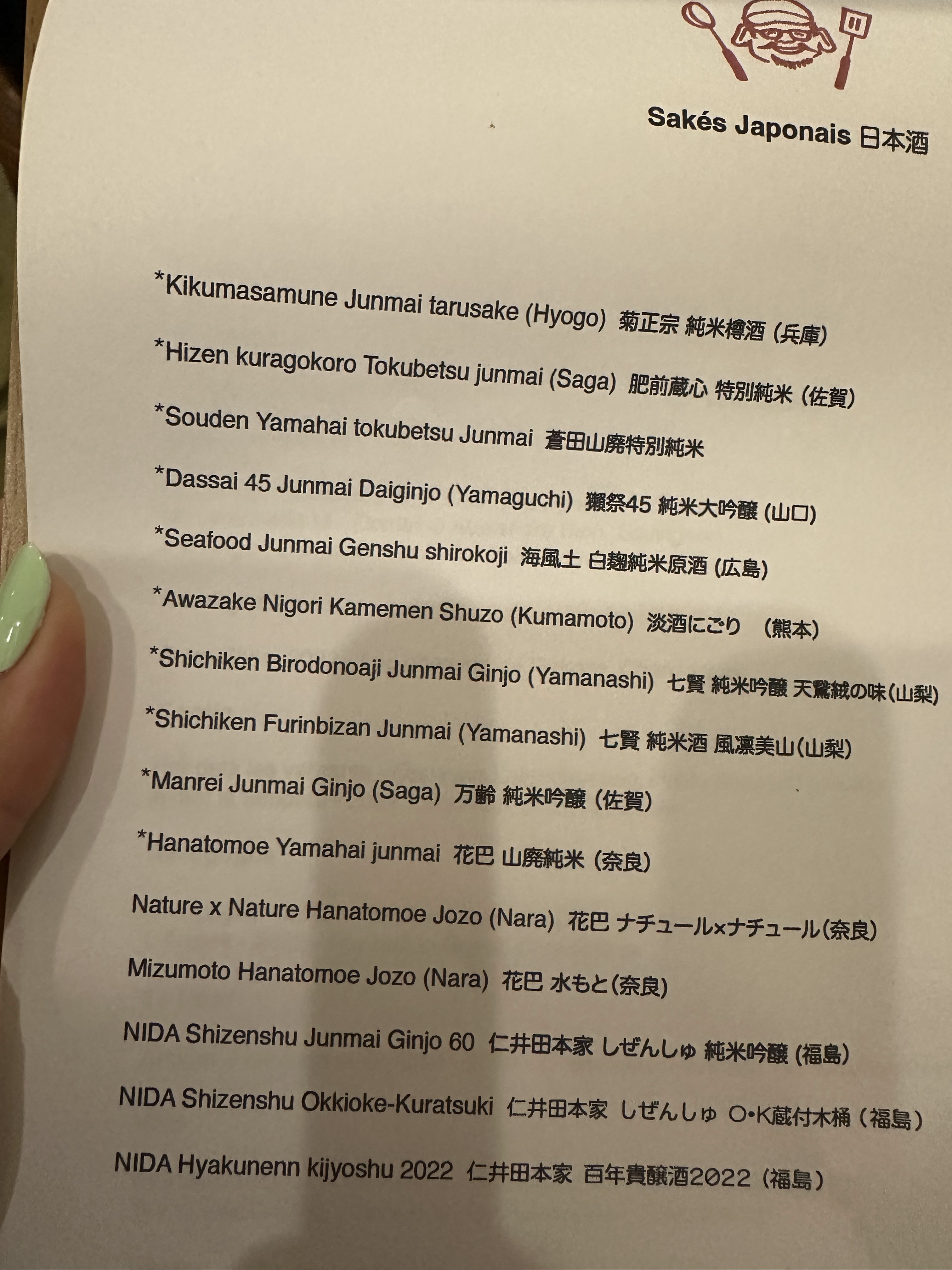 Olala quelle pépite cet izakaya ! Première chose, il y a plein de choix : que ce soit végétarien voire végan, viande ou poisson. En plus de la carte classique, l'établissement propose aussi la carte du jour avec presque 10 plats/tapas. Nous avons commandé du poisson, des fruits de mer, de la viande, tout était très bon ! Une sans faute. Deuxième chose, il y a une très belle sélection de saké : fruité, floral, minéral, filtré, non-filtré. Nous avons l'embarras du choix et avons décidé de partir sur 4 sakés différents. Encore une fois, tout était trop bon ! Enfin, le service était sympa. Nous avons été bien accueillies et conseillées concernant le choix du saké. Et la cerise sur le gâteau, le prix est plutôt raisonnable. Nous étions 4 gros mangeurs, avons pris 11 tapas différents, 2 desserts et 4 pichets de saké, tout ça pour moins de 60€ par personne.