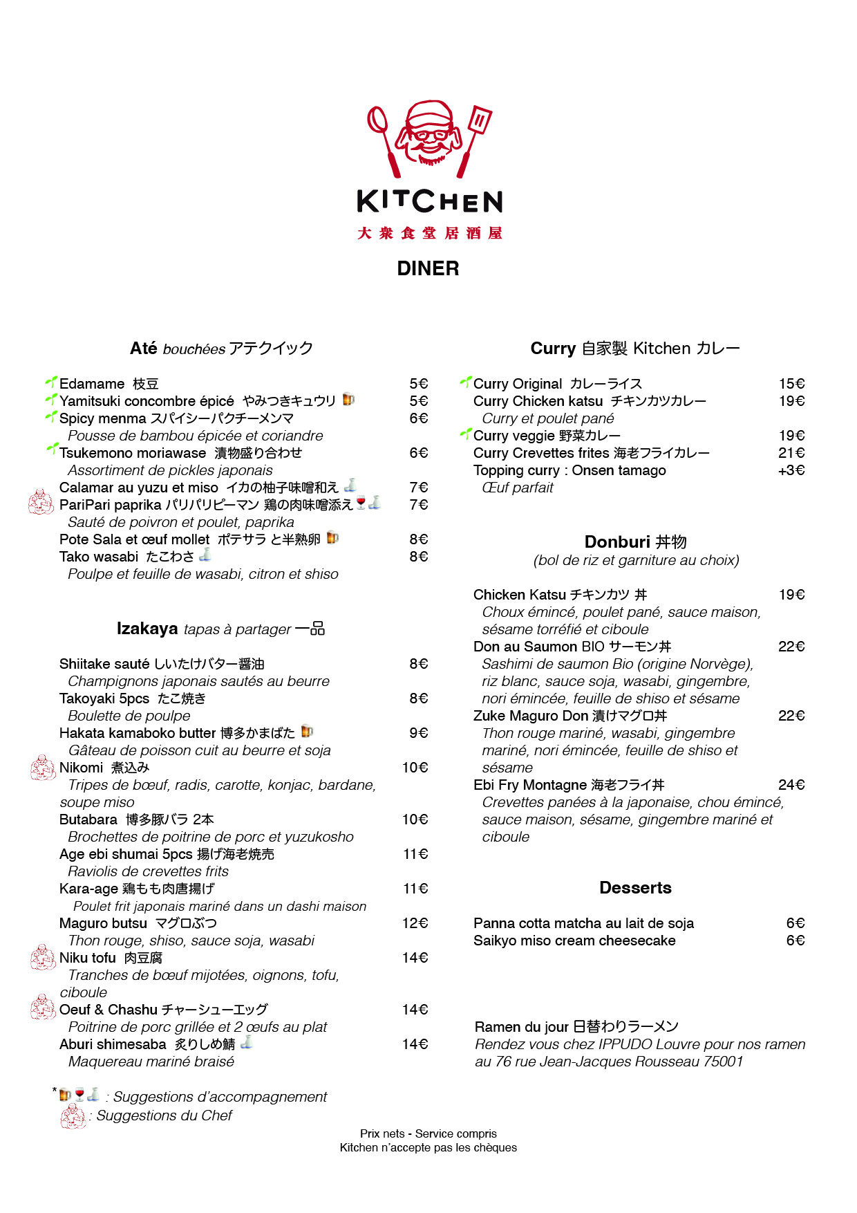 Voici toutes les informations sur le Restaurant de type izakaya Kitchen Izakaya qui ce trouve au 32 Rue Tiquetonne, 75002 Paris (75). Sur cette fiche vous trouverez les photos, l'adresse, les horaires d'ouverture, le numero de téléphone et les avis clients.Vous pouvez églement rédiger un avis si vous le souhaitez en bas de page.